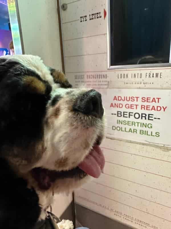 - Old-time photo booth – we never had a problem taking our dogs in the photo booth with us. See?