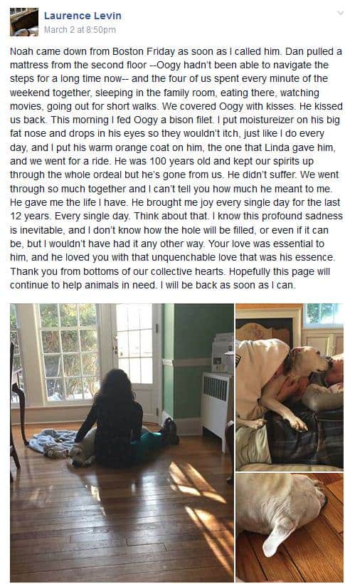 In his own words, Oogy’s dad, shared the news of Oogy’s passing on March 2, 2015, writing on Facebook: